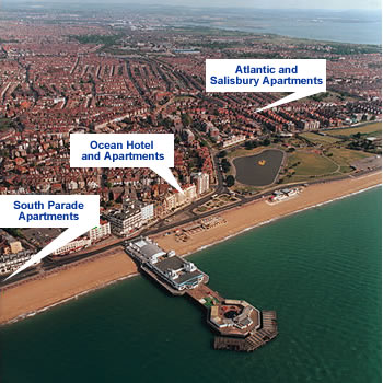 The Ocean Suites and Apartments and South Parade Apartments are directly on Southsea seafront with magnificent view of the sea and the Isle of Wight.